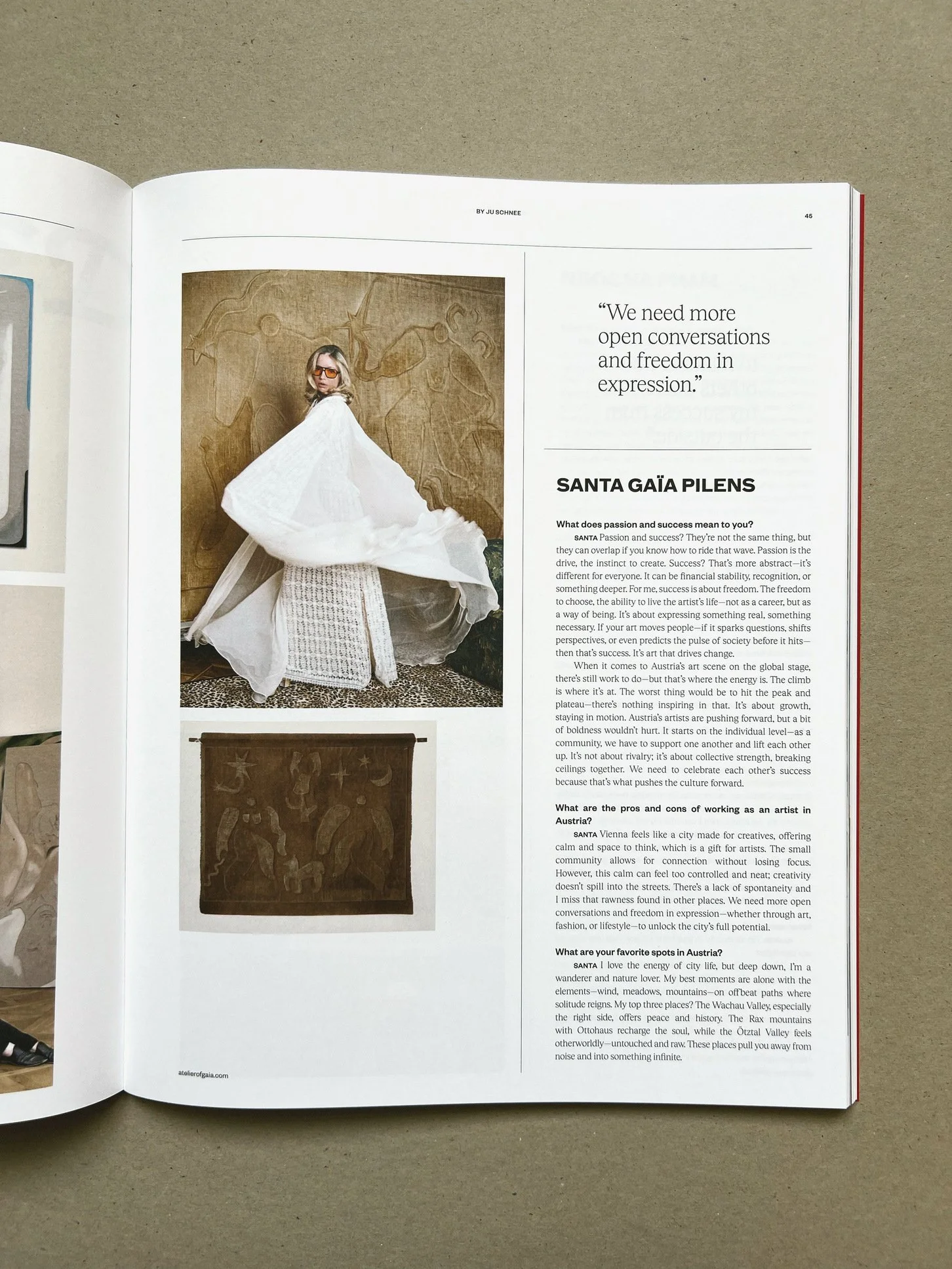 TEXTILE MURAL BY SANTA GAÏA PILENS FEATURED ON THE LEFT SIDE PAGE